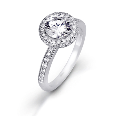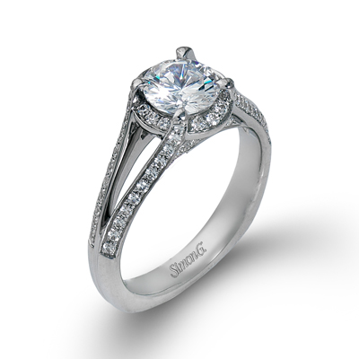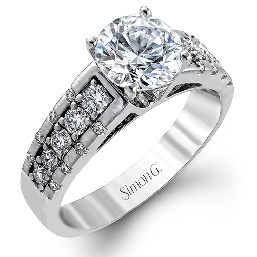 Simon G MR2208 Three Stone Caviar Diamond Engagement Ring In ...